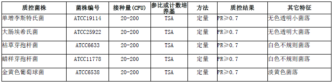 按標(biāo)簽用法制備培養(yǎng)基,接種以下質(zhì)控菌株,放置36±1℃需氧培養(yǎng)48±2小時(shí)。