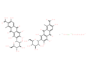中文別名:胭脂蟲紅; 胭脂蟲紅鋁; 7-β-D-吡喃葡萄糖基-3,5,6,8-四羥基-1-甲基-9,10-二氧代-蒽-2-羧酸