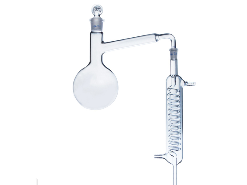 蒸餾器是利用蒸餾法分離物質(zhì)的器具。其造型由具塞圓底蒸餾燒瓶與一支蛇形冷凝管經(jīng)磨砂配套而成。而原理則是利用蒸餾方法使不同沸點的混合液在蒸餾燒瓶內(nèi)逐漸地蒸發(fā),并不斷將生成的蒸氣移出,在冷凝管內(nèi)冷卻,使混合物達到分離提純目的。適用于自來水廠、防疫站、科研單位實驗室對水質(zhì)進行分析、各種有機溶劑的分餾提純。