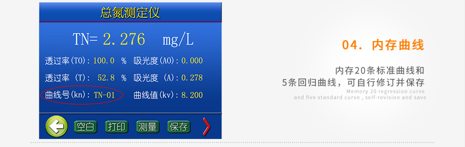 儀器自備校準(zhǔn)功能,可根據(jù)標(biāo)準(zhǔn)樣品計(jì)算并存儲曲線,無需手動制作曲線;