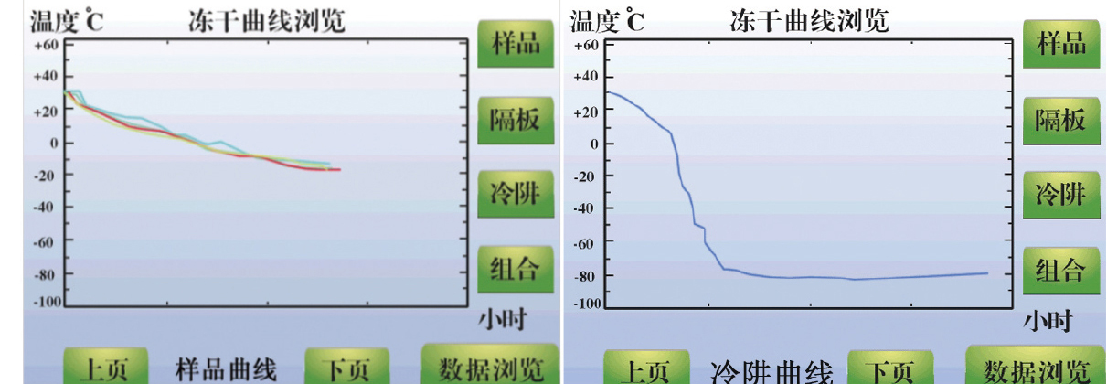 中文界面,能夠以曲線顯示樣品溫度、冷阱溫度、真空度等工作參數(shù);