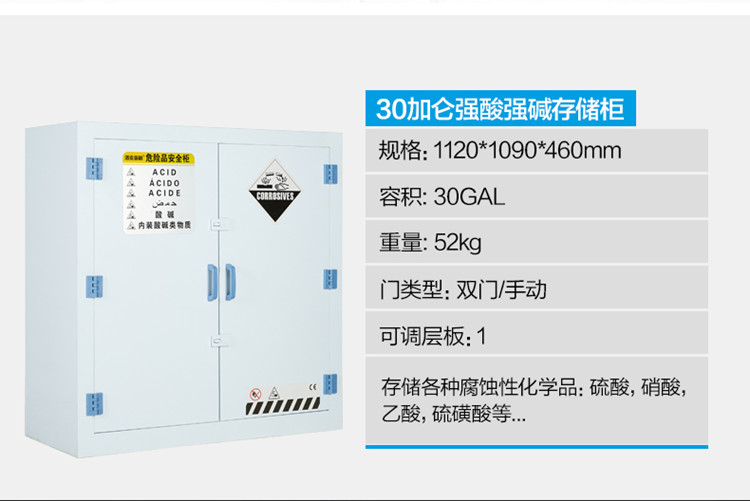 強酸堿儲存柜具有耐強酸、強堿與抗腐蝕。適用于實驗室各類化學品及器皿的安全存儲。